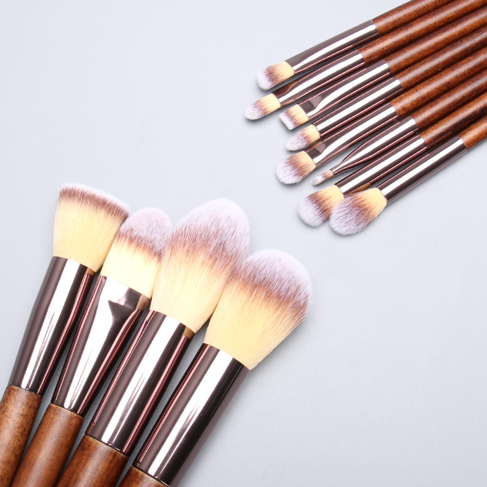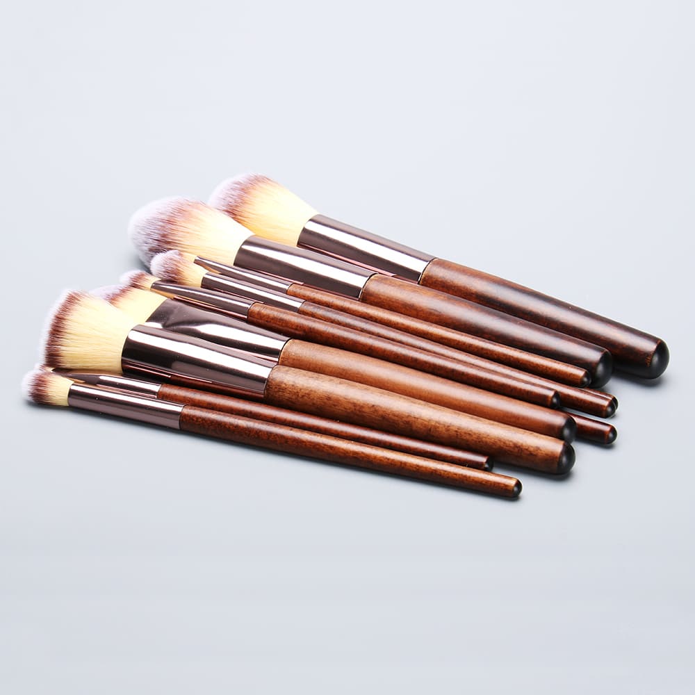 Complete Face & Eye Makeup Brush Set with Wooden Handles