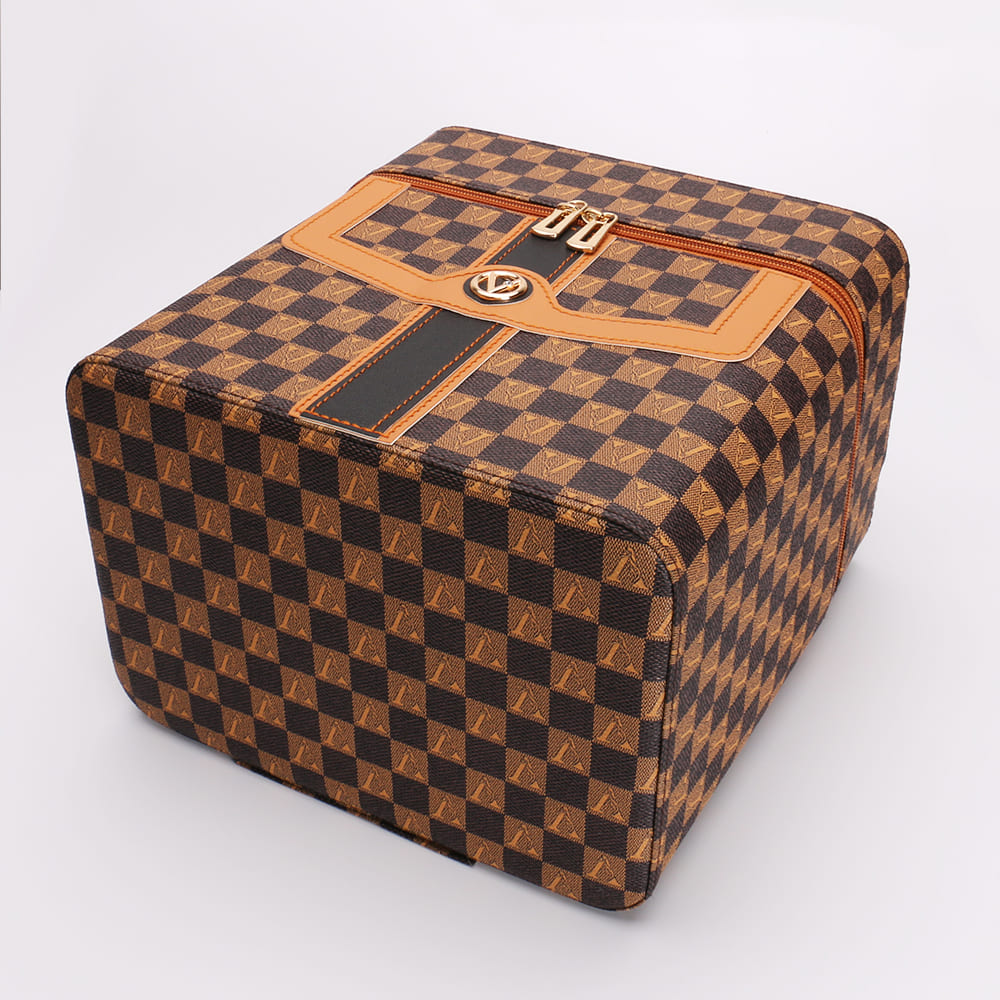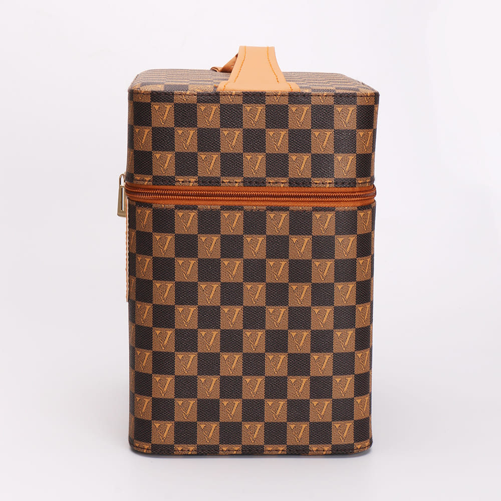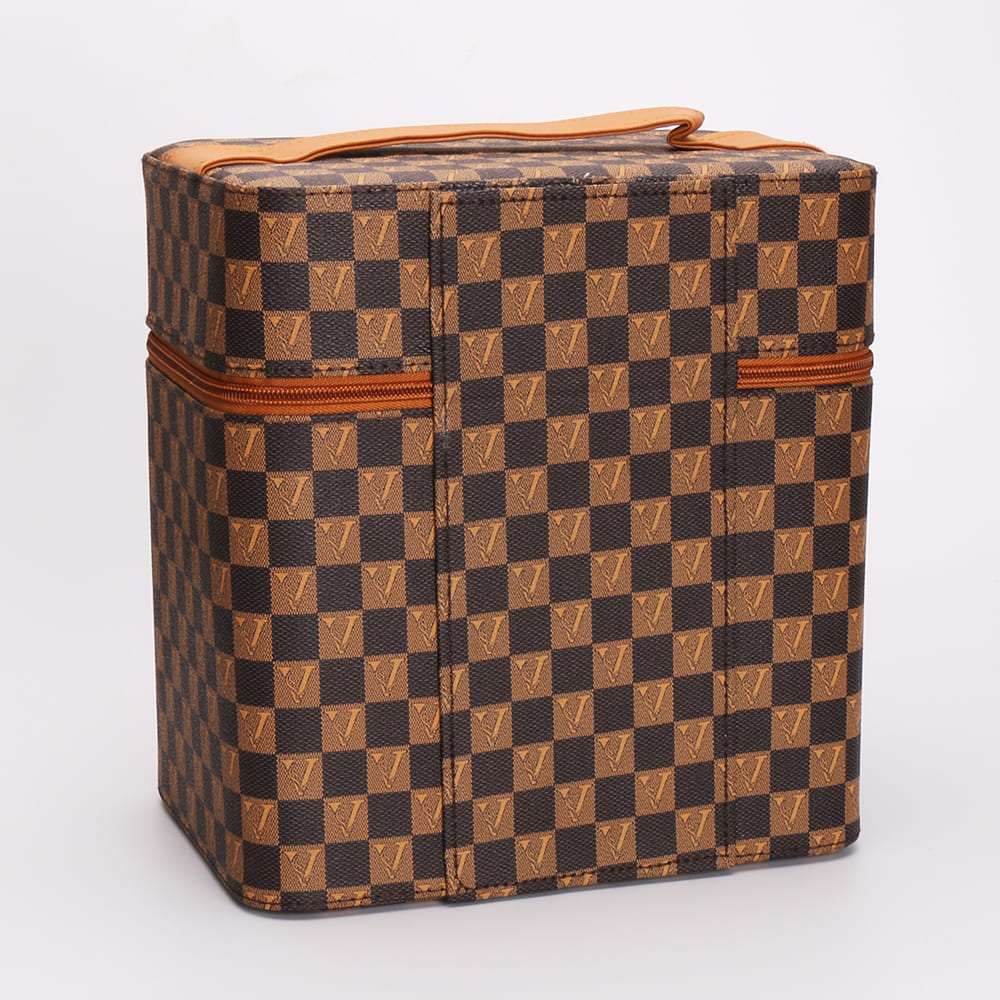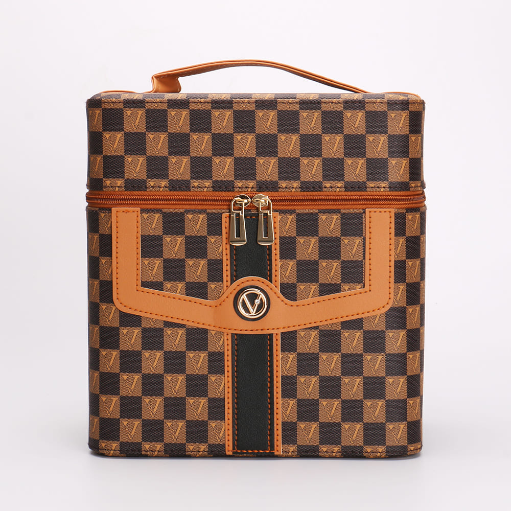 Checkered Makeup Train Case with Fold-Out Trays and Mirror