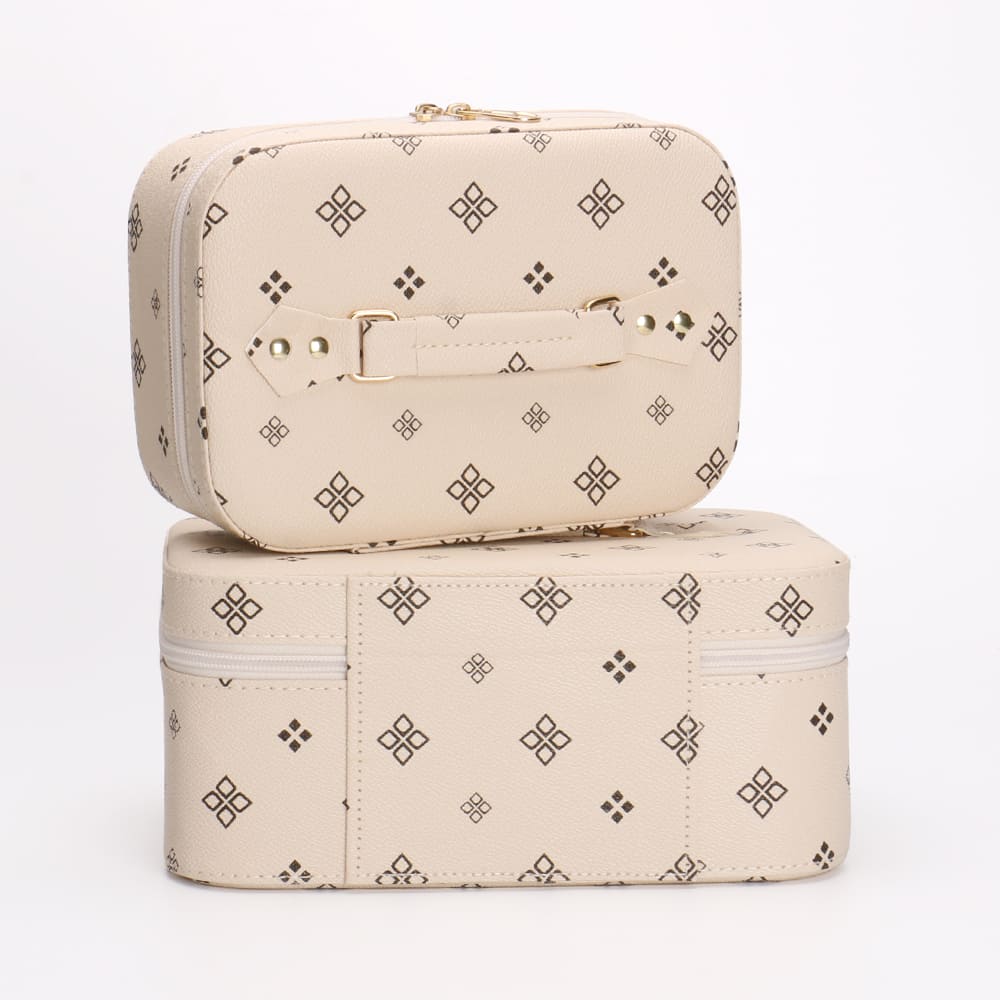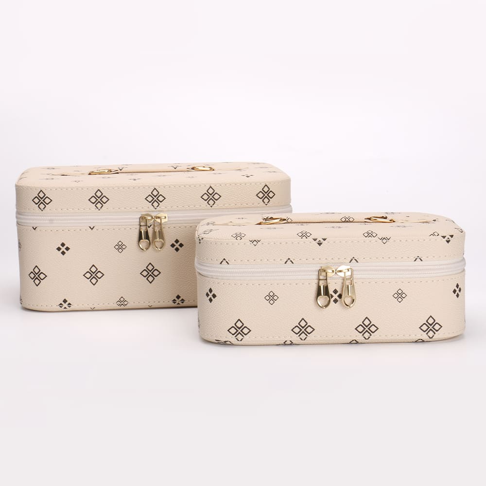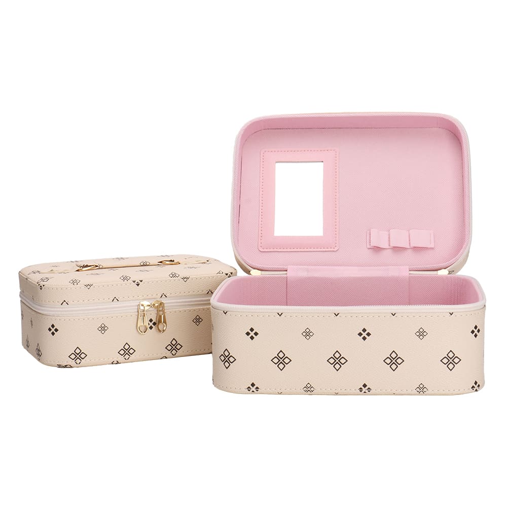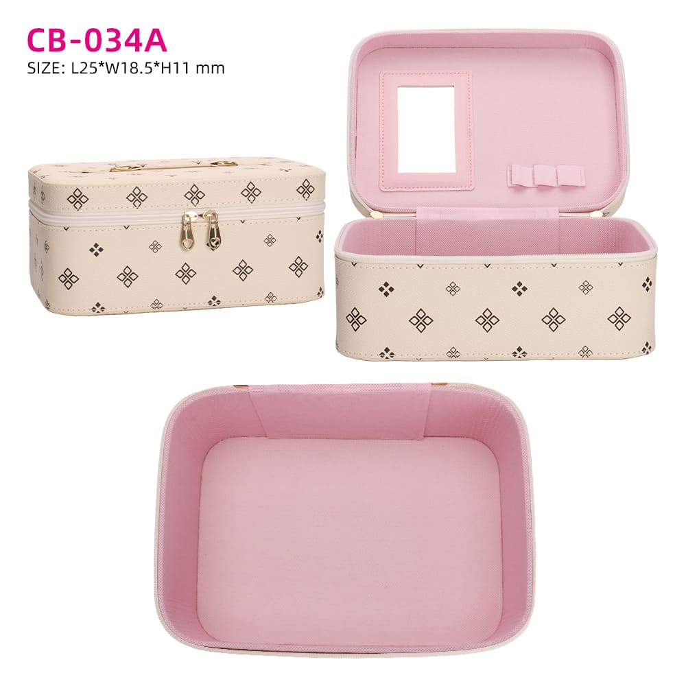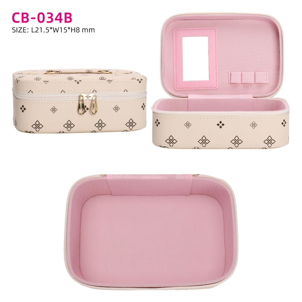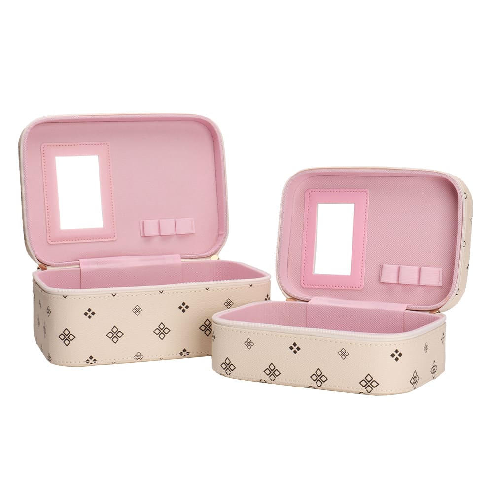 PVC Faux Leather + Grey Cardboard + Glass Mirror + Non-woven Fabric + Elastic Band + Zinc Alloy Zipper