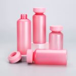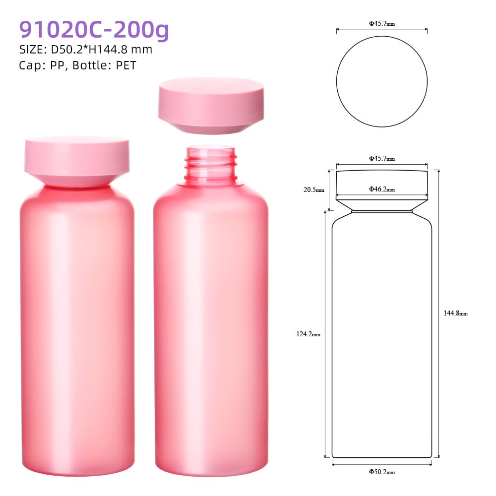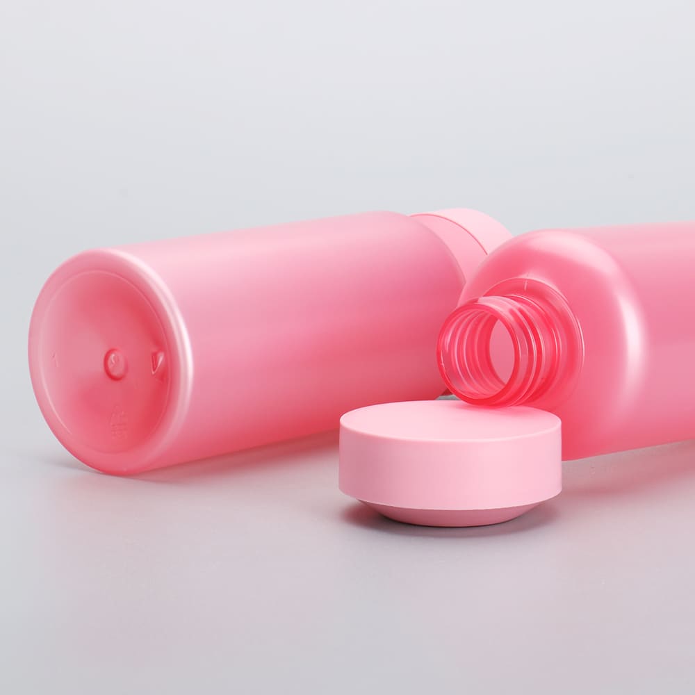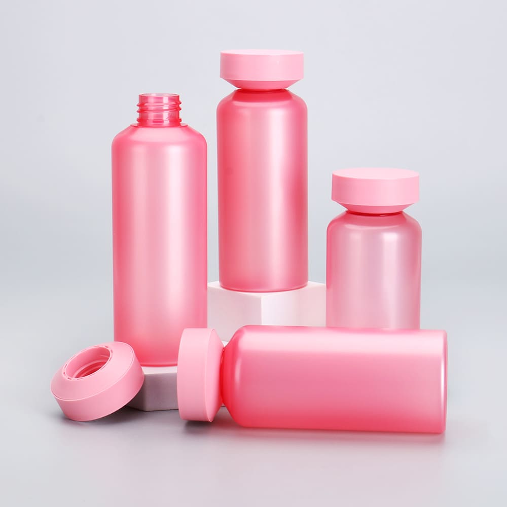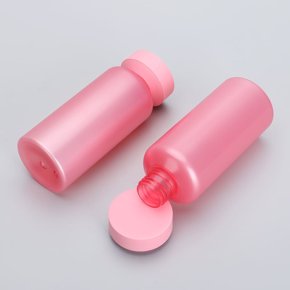 Frosted Pink Cylinder Plastic Bottle with Screw Cap